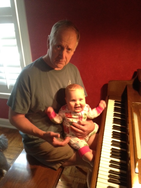 Having just spent nearly 3 weeks with Eve (and Lauren and Trent), I have come to the sobering conclusion that I am not perceived by Eve as her grandfather. Instead I am viewed as a humungous (over)stuffed toy that happily interacts doing all manner of interesting and time-consuming activities. We open and close doors ad nauseum. We throw things with great enthusiasm like Sandy Koufax in his heyday Since Eve is prone to pointing at things, I (being the dutiful grandfather) provide an on demand taxi service — taking Eve in whatever direction she points at and picking up whatever object may strike her fancy at any given moment. Believe me. . . . it is a slice. . . . . A wonderful slice. . . .